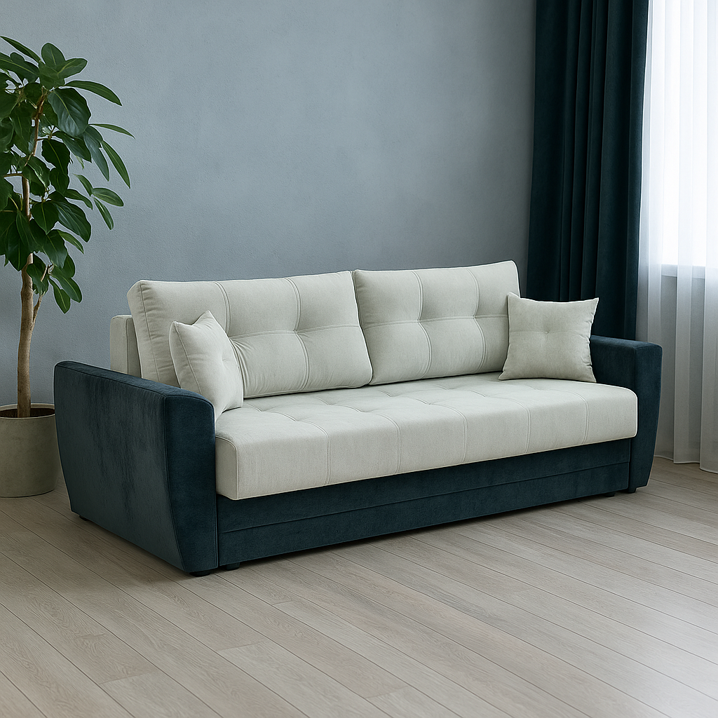 Диван "Кинг" имеет прямые и четкие линии, может украсить любой интерьер. Принцип действия механизма сундук очень прост и удобен, что бы получить полноценное спальное место, нужно выкатить сиденье вперед и опустить спинку дивана. Широкий подлокотник сделанный под скосом, придает модели лаконичность и уверенную опору для рук. Возможна замена подлокотников/подушек. Габариты: 2430х1050 мм. Спальное место: 1980х1500 мм. Высота: 1000 мм. Система хранения: ящики для белья. Механизм: тик-так (на металле). Основание: металлический каркас. Наполнение: ППУ или независимый пружинный блок. Возможно изготовление кресла. Габариты: 1100х1050 мм. А также возможны варианты механизмов трансформации: -сундук; - ТТ выкатной с ящиками; - ТТ выкатной с дельфином. Возможны изменения габаритных размеров.