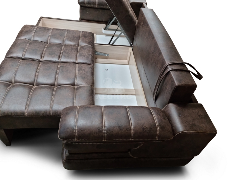 - Каркас углового дивана изготовлен из фанерного бруса (ламель), фанеры, ЛДСП, МДФ, ДВП