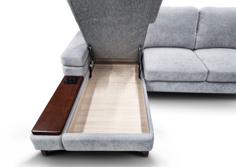 - В диванном пуфе установлен механизм подъема сидения и есть ящик.
