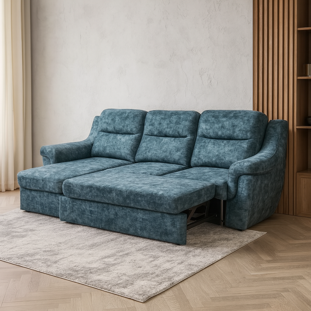 Диван "Валенсия" - это гармония стиля уюта и комфорта. Его изысканный дизайн с оттоманкой, создает уютную зону для отдыха, а комфортные приспинные подушки придают дополнительное удобство. Благодаря механизму трансформации конрад, диван легко превращается в просторное спальное место, делая его идеальным выбором для тех, кто ценит комфорт и практичность.